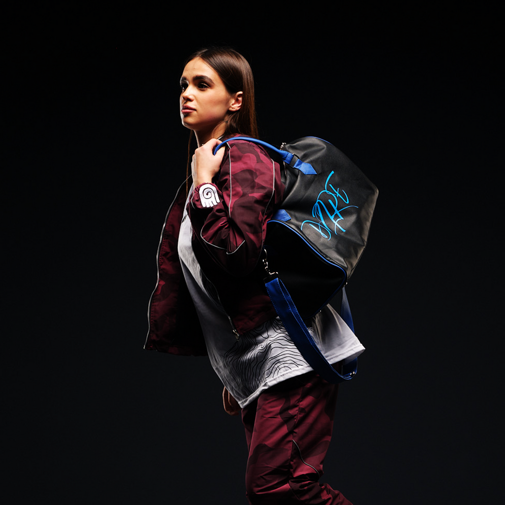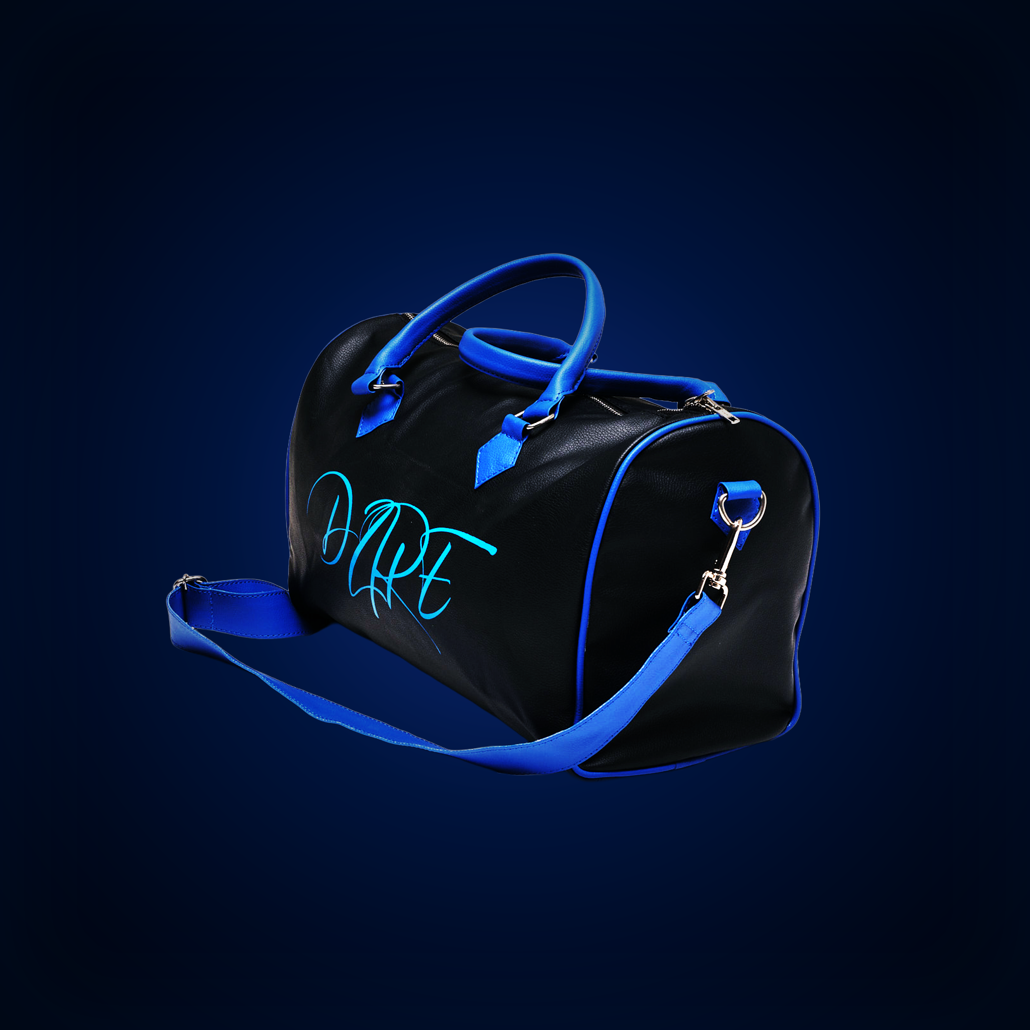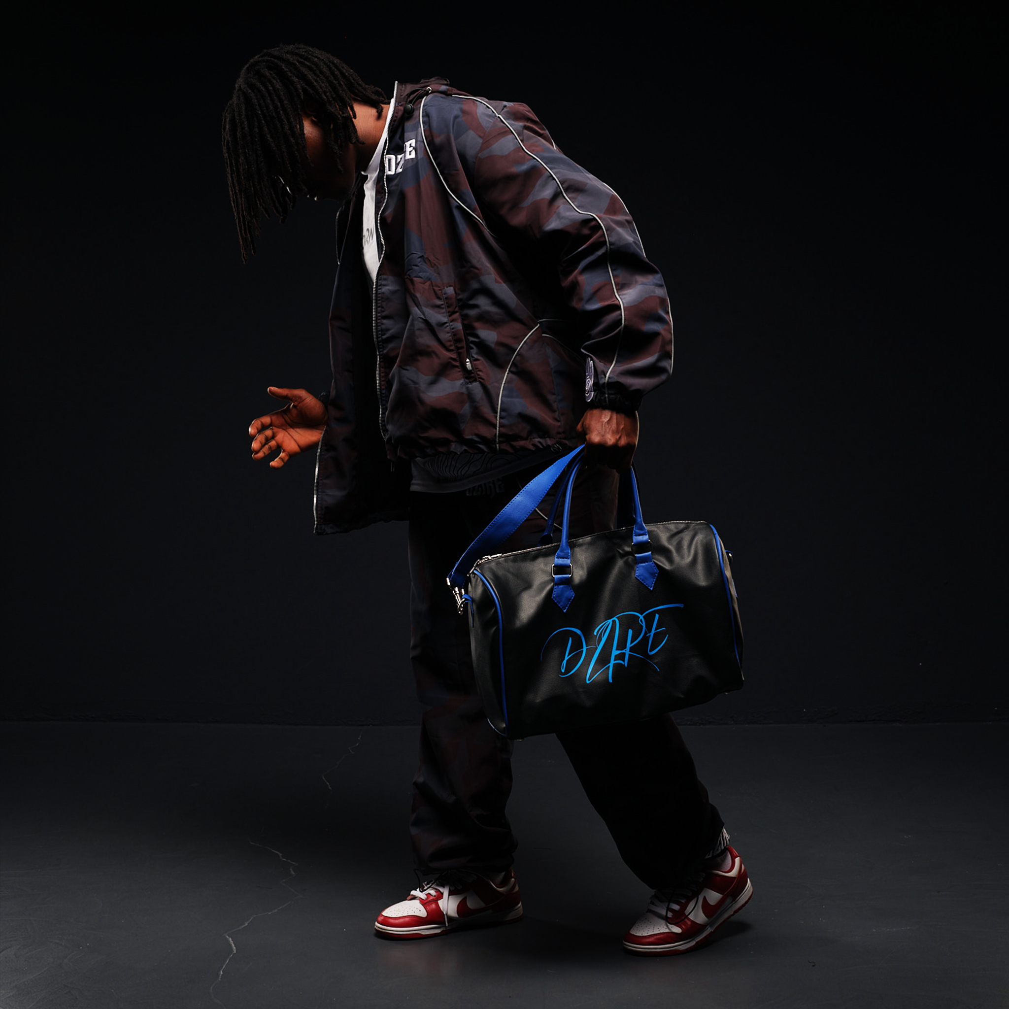 The Dzire Shadow Bag blends bold street design with a luxury finish — matte black base, electric blue details, and the signature DZIRE logo. Built for everyday movement, from gym to city nights.